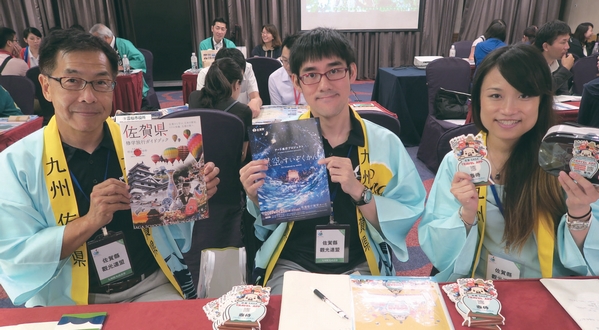 ▲(左起)九州觀光推進機構海外誘致推進部主任大石宜蓉、次長水上敏明、鹿兒島縣觀光交流局觀光課海外誘致係主查橫 山武德、大分縣企劃振興部觀光•地域局觀光•地域振興課國際觀光班課長補佐川島榮一郎、熊本縣商工觀光勞働部觀光經 濟交流局觀光課主任主事家入慎一郎、長崎縣觀光連盟海外誘致課主任濱口侑子、佐賀縣觀光連盟企畫宣傳部長中島靖憲、 福岡縣商工部觀光局觀光振興課海外誘客係財間輔、九州觀光推進機構海外誘致推進部長大衛正直。