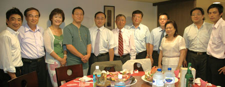 ▲(左起)飛龍旅行社經理王炳忠、董事長蕭國光、PG TOUR代表取締役富田???、新鹽原飯店Inbound Sales擔當課長熊谷保二、營業部部長伊東新介、名生旅行社董事長柯佳銘、創造旅行社協理王文生、駿樺旅行社日本線經理賴俊霖、長伸旅行社總經理簡金葉、創造旅行社業務部課長周賢璋、飛龍旅行社經理蕭彥璽。