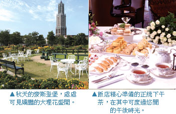 此外,園區中每家飯店lounge均備有特製的蛋糕,也是不可錯過的秋日限定甜點,於10/1~11/30期間更可在豪斯登堡體驗正統的歐式下午茶,香醇的紅茶搭配飯店精心特製的英式鬆餅以及甜點,享受優雅的午茶時光(業者須留意此為預約制,為週六、日及假日限定)。