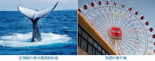 雖然賞鯨活動在台灣花東等地區相當盛行,但若要看到鮮少在台灣海域出沒的稀有保育動物「座頭鯨」,相信去能見率高達90%以上的沖繩觀賞絕對是最佳選擇(能見率平均數:2005年1~3月90.0%、2004年1~3月94.5%)。