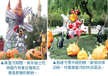 ★萬聖商品新登場 園內的各大商店將推出約190多種充滿萬聖氣氛的特別商品,包括鬼面南瓜、妙鬼幽靈以及萬聖裝扮的迪士尼卡通人物等設計。簡便的萬聖服飾讓來賓可以輕易變裝。