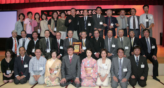 ▲台北市旅行商業同業公會副理事長許禓哲(第二排右6),與郡上市觀光聯盟會長吉村安房(第二排右7)互換友誼禮物,岐阜縣郡上市副市長森弘彥(第二排右5)也到會場並與大家合影留念。