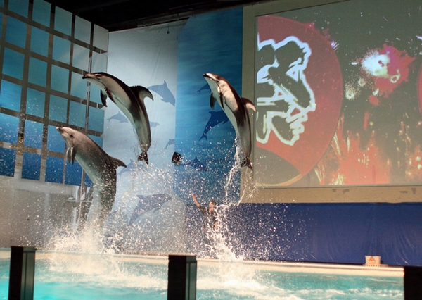 ▲結合睡魔元素的海豚秀只有在青森才看的到!