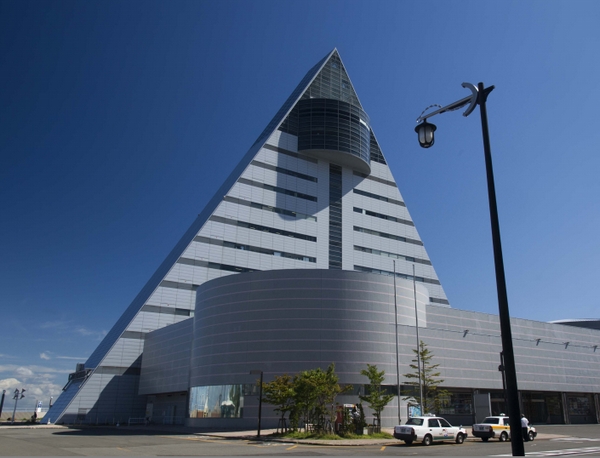 以青森日文「AOMORI」為靈感所建的物產館,外觀類似英文字母A相當搶眼,1樓可逛匯聚青森當地物產的伴手禮中心以外,館內更擁有號稱日本最大規模的互動影廳,能夠在360度3D影片的帶領下,欣賞震撼無比的睡魔祭,或是自13樓的展望台遠眺青森市街美景。