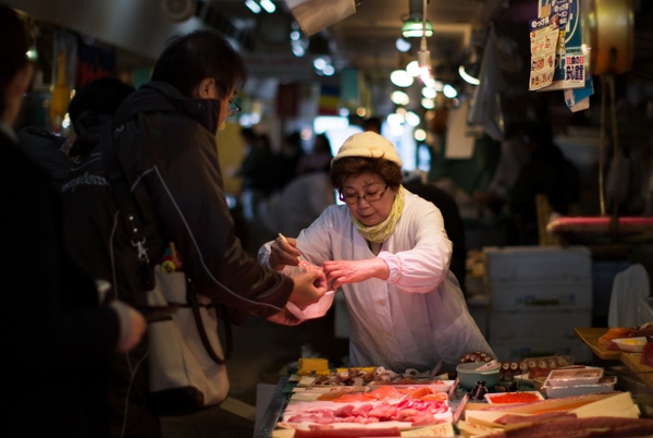匯聚美食的古川市場被稱為「青森市民的廚房」,品嘗必吃美食「自助海鮮丼」前需先在導覽所購買餐券,可在市場內約30間相關店鋪使用,從白飯到生魚片、蔬菜、肉類等配料都能自由任選,搭配出專屬於自己的丼飯後再前往休息區享用。