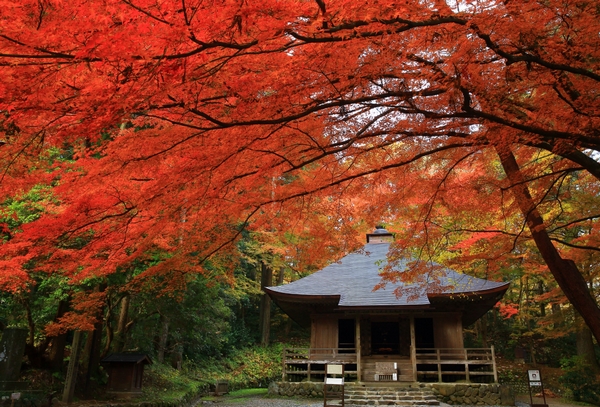 中尊寺相傳建造於西元850年,距今已有千年以上歷史,10月下旬~11月上旬為紅葉最佳觀賞期,自入口處的月見坂開始,參道沿途紅葉圍繞,美不勝收。境內必訪華麗無比、閃爍金箔光輝的日本國寶「金色堂」,雖曾遭遇多次火災,但中尊寺仍保留下包含金色堂在內約3,000多件國寶及重要文化財,被譽為東日本首屈一指的平安時代佛教藝術寶庫。