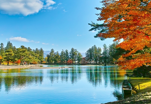毛越寺與中尊寺同為世界遺產平泉的構成資產,相傳同於西元850年所建,據說過去曾擁有40多座堂塔、500多間禪房,規模龐大甚至超越中尊寺,歷經多次火災侵害後,現以「大泉之池」為主的淨土庭園美景最為人所知,秋季紅葉遍佈,遊客可以自JR平泉站搭乘平泉町「巡迴巴士RunRun」前往,還能搭配中尊寺一起暢遊。