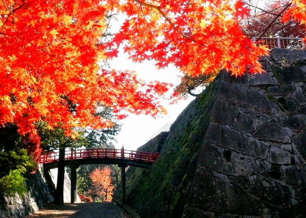 ▲推薦在渡雲橋周圍取景,能一次捕捉紅葉、渡雲橋和古老城垣。
