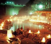 在西日本露天風呂中排名「橫綱」的湯原溫泉鄉,可說是岡山地區最具盛名的溫泉鄉,而今年湯原溫泉也特別在露天風呂的溫泉街舉辦點燈活動,從橋入口至露天風呂「砂湯」間點燃1500餘根蠟燭,旅客在泡湯欣賞景緻之餘,也不妨漫步其中欣賞美麗的燈景。