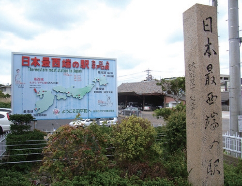 平戶市的「田平平戶口站」是松浦鐵道西九州線上的一個車站,也是最接近平戶島的鐵道門戶,1935年開業後一直以日本國土上最西邊的車站自稱。1962年時,更在車站前豎起「日本最西端車站」的石碑,可說是平戶市人的驕傲之一。然而在2003年,沖繩都市單軌電車線落成後,同線的「那霸機場站」頓時成為日本最西及最南邊的車站。不過即使如此,現在來到田平平戶口,「日本最西端車站」石碑依然屹立不搖,而且從2015年開始官方更打著日本最西邊車站的名號用力宣傳,站內外貼滿了最西端車站的字眼,站內更販售訪問證明書給遊客。