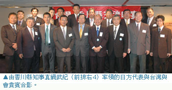 為了促進台灣與四國香川縣之間的交流更進一步,日前特別於台北喜來登大飯店舉辦交流晚宴,由香川縣知事真鍋武紀率領香川縣官方以及民間各單位代表來台與會,真鍋武紀表示,「最近中日在航運上有著重大的進展,在開放小松與宮崎2航點之後,對於兩地的各方面交流想必會有更長足的進步;而香川縣在目前雖以包機形式飛航台灣,但是未來期望在台日兩方的努力之下,也能夠促成定期航班的飛航,相信對兩地而言都會有著正面的發展。」