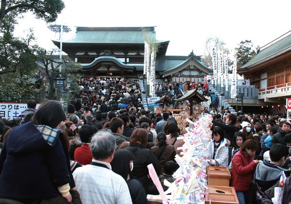 松山市南部伊豫豆比古 命神社於每年農曆春節 會舉行的祭典,吸引約 50萬人前來參拜,祈 求生意興隆、開運,參 道兩旁過往約有800店 家設攤,連續營業72 小時不間斷,許多人 會買限定販售「結緣 糖」,而被稱為「熊 手」的吉祥飾品更是受 商家喜愛。