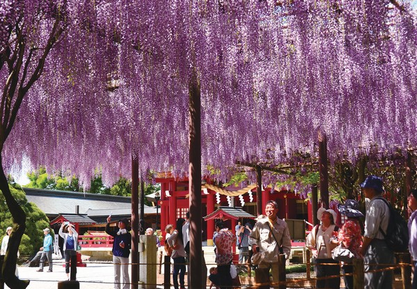 ▲笠間稻荷神社擁有寬廣的藤棚能欣賞藤花美景。