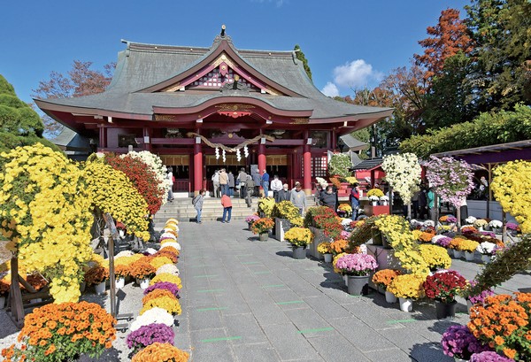 ▲笠間菊花祭期間神社境內色彩繽紛。