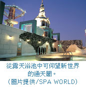 營業部的道古康博表示,「『SPA WORLD』,當初此溫泉主題公園設立時,就是以渡假區的概念在做規劃,所以除了溫泉、游泳池設施外,也有餐廳、飯店等設備,是一個可以讓旅客玩上一整天的度假區。而設置地點也是選擇交通便利之處,無論是搭大眾工具或是開車前來都很方便。未來,除針對團體客外,也將會規畫針對個人住宿客的設備。」http://www.spaworld.co.jp/