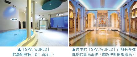 SPA WORLD除了在今年推出最新設施外,即日起到2008年3月31日止,原本入館費3,000日圓,變成只要1,000日圓(外加10%服務費),預近將會掀起另一溫泉風潮。儘管SPA WORLD目前外國旅客約只佔2~3萬人,而面對未來要展開的新事業,SPA WORLD也將視野投向海外市場,而台灣市場也是未來規劃的重點市場之一。SPA WORLD已經規劃了中文網站,歡迎上網查詢:http://www.spaworld.co.jp/index.html