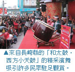 此外,2/16、17兩天,在SOGO門口一樓還特設了一個舞台區,兩天一共進行了4場「和太鼓.西方小天鼓」的演舞會,氣勢磅礡的演出,吸引了眾多民眾駐足觀賞。現場並舉辦有獎徵答,氣氛相當熱絡。此外,豪斯登堡國際營業部總監劉厚志也專程來台於現場提供旅遊諮詢服務,印製精美的觀光手冊及以豪斯登堡鬱金香祭為主的大型看版,引起現場民眾高度的詢問。