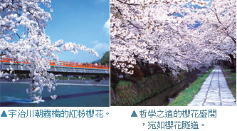 京都的櫻花種類之多,有染井吉野、山櫻、里櫻、枝垂櫻、八重櫻等令人目不暇給,是賞櫻季節必訪的勝地,一般來說約在3月下旬至4月上旬。京都市內作為主要名勝的景點如下: