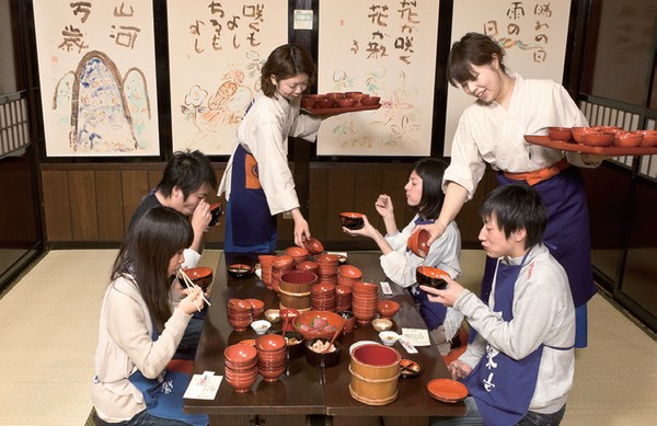 擁有超過150年歷史的「東家」是販售盛岡三大麵「碗子蕎麥麵」的名店之一,分裝為小碗的蕎麥麵搭配店員吆喝聲或樂聲一口口送入嘴中,是極具儀式感的岩手飲食文化體驗。店家以俐落節奏為客人不斷添麵,直到客人主動蓋上碗蓋為止,只要吃超過100碗,就能獲得達成挑戰的紀念手型木牌和證書,成為許多旅客到訪盛岡必拍、必試的名物。