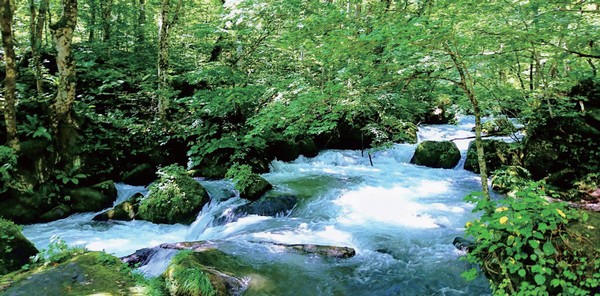 ▲奧入瀨溪流夏季翠綠、溪水聲潺潺,宛如人間仙境,適合安排健行或騎乘自行車遊玩。