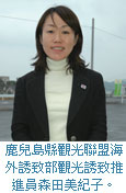 而與宮崎共同推廣觀光多年的鹿兒島縣觀光聯盟海外誘致部觀光誘致推進員森田美紀子則表示,鹿兒島本身擁有豐富的觀光條件,包括全日本唯一的天然砂浴指宿溫泉、活火山櫻島以及世界文化遺展屋久島等離島資源,在2011年鹿兒島與福岡之間的新幹線將正式全線,屆時從福岡到鹿兒島僅需1小時20分,交通路線上將可更為便捷,也希望藉由正航班的開拓,能夠讓更多旅客造訪鹿兒島。