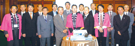 ▲ 新潟縣產業勞動觀光部觀光局局長坂f0 卷健太(前排左5 )、觀光振興課長笠鳥公一(前排右2)、廣域國際觀光室主任小河原太郎(前排左1)與訪問團成員合影。
