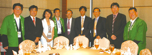 ▲ 日本航空台北營業處旅客業務部部長山戶博司(右4)、日本航空(右5)、新岡部飯店野原祐之(左1)、鬼怒川御苑飯店阿部祐一(左4)、鬼怒川Plaza Hotel藤原敏明(右1)與旅行社業者合影。