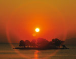 搭乘白鳥號遊湖是團體最常安排的行程。航行時間為一小時。宍f0 道湖的夕陽在日本享譽盛名。其最具特色之處為,天空的雲朵,遠方的山脈以及從湖面上方緩緩降下,落入水平線的金黃色夕陽之間的完美比例。(圖片提供╱本刊圖庫)