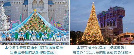 此外,今年嶄新策劃的「迪士尼卡通明星聖誕迎賓會」中,迪士尼卡通明星將換上本季最新的聖誕裝漫遊海濱公園。其他如「聖誕老人與小熊達菲假期迎賓會」及「聖誕老婆婆與富貴貓假期迎賓會」等諸多活動也將連番登場。而在眾多精彩的娛樂表演外,活動期間東京迪士尼渡假區亦將推出各種精心設計的限定版商品及特別佳餚,讓園內處處洋溢濃厚的聖誕佳節氣氛。