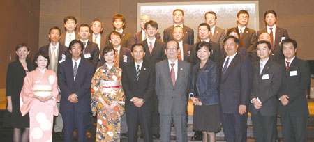 ▲ (前排左5起)國土交通省中國運輸局企劃觀光部國際觀光課課長三原利明、日本觀光協會台灣事務所所長井久保敏信、與行銷企劃部副理黃鈺雲、中華航空台北分公司行銷策劃部經理郝光復、客運營業部團體組主任羅俊英、全日空台北支店業務主任陳德成,以及日本航空台北營業處旅客業務部部長山戶博司(前排左3)、日本航空台北營業處旅客業務部經理方曼麗(前排左1)。
