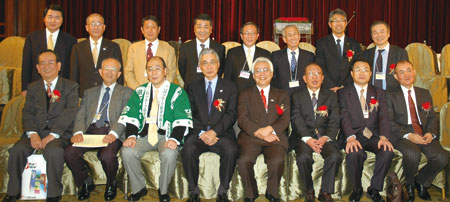 ▲ (前排左起)日本觀光協會台灣事務所所長井久保敏信、JR協定旅館飯店聯盟東日本地域山梨.多摩支部長田中和芳、副會長田村亮一、東日本旅客鐵道株式會社常務取締役見並陽一、JR協定旅館飯店聯盟東日本地域本部會長磯田光治、JR指定休憩店聯盟東日本支部支部長小野寺邦夫、JR協定旅館飯店聯盟東日本地域本部副會長富井松一、創造旅行社董事長鈴木尊喜。
