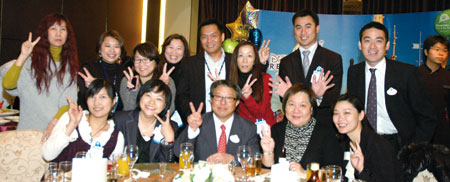 ▲ Oriental Land株式會社營業本部副本部長今坂依作(前排左3)、營業三課係長竹內努(後排右1),與業者把酒言歡、相當盡情。