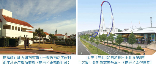 除了延續以往的景點外,康福旅行社還藉由電視購物頻道通路,成功促成99島遊船,及西海橋國立公園、水族館、船型博物館、挖珍珠體驗、圓形劇場等5合1行程持續熱賣。謝雲苗表示,除了九州傳統行程外,還拉進了希臘神話度假村這個獨家商品,為房數不多但各具特色的Villa式建築。
