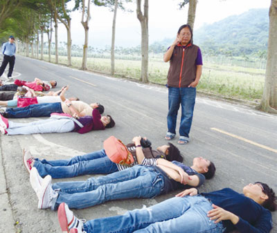 ▲躺馬路是遊龍田村的一大樂趣