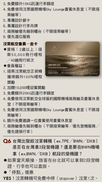 汶萊皇家航空自今年6月起提供每週4班台北直飛汶萊的航班服務,豐富多樣的產品與體貼的服務一直都是同業最佳銷售選擇。為了讓同業更加清楚汶萊皇家航空,特別針對6大常見問題,提供同業明確解答,讓銷售更加無往不利。