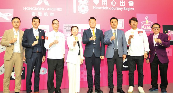 ▲香港航空主席閻波(左4)與同仁一同歡慶香港航空18週年紀念