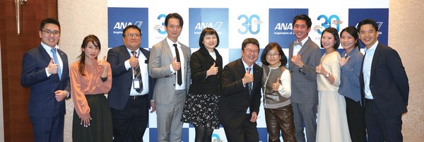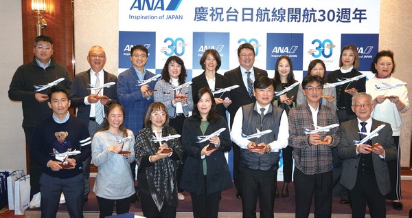 ANA集團自1994╱12╱12首航首條桃園─福岡航線,後依序在2002╱4月開設桃園─成田航線、2006╱1月開設桃園─名古屋航線,以及2010╱10月開設松山─羽田航線,至今開航台灣航線已屆滿30週年。為了感謝旅行同業一路以來的支持,特別於12╱18假大倉久和大飯店舉辦「ANA台日航線開航30週年紀念晚宴」,並在宴席中頒發優秀旅行社,並期望未來一起共同走向下一個30週年。