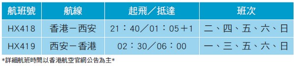 ▲香港航空於7/18~8/24開啟香港-西安季節性航班。