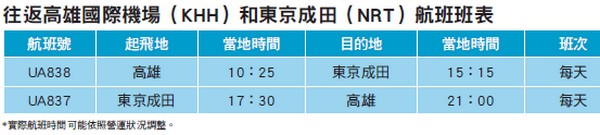 聯合航空海外銷售董事總經理馬富斯(Marcel Fuchs)表示,聯合很高興能推出這條連結高雄與東京的新航線。當我們開通新航點並得以為旅客提供更多航班選擇時,這對聯合來說都是值得慶祝的重要時刻。這條新航線也將對觀光旅遊發展有極大助益,不僅便利日本旅客直飛高雄,也讓高雄出發的旅客能輕鬆轉機前往美國。