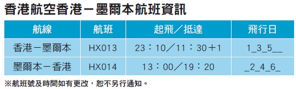 ▲香港航空將於12/12正式開通香港直飛墨爾本航線。