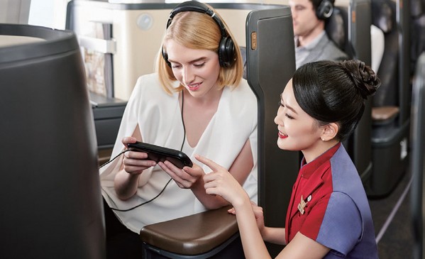 ▲中華航空台北-溫哥華航線以B777-300ER客機,全艙等旅客皆可免費上網或傳輸文字訊息。