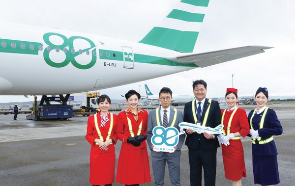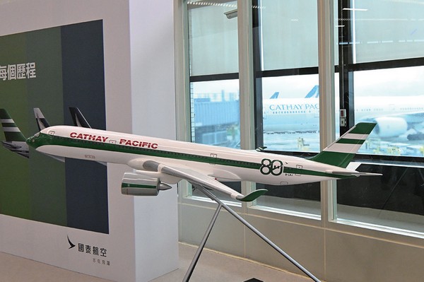 為歡慶80週年,國泰航空同步推出「80週年紀念特別塗裝系列」,精選最具代表性的機型波音B747-8F及空中巴士A350,推出飛機模型、鑰匙扣和帆布袋等實用商品,邀請旅客一同收藏這段非凡時刻。