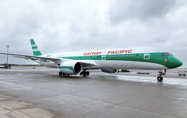 國泰航空80週年首架特別塗裝客機於3/3飛抵桃園國際機場,象徵「同心飛躍八十年」週年慶祝活動正式在台展開。此次亮相的空中巴士A350長程客機,以經典綠白間條、暱稱「生菜葉三明治」的復古塗裝登場,成為當日機場最受矚目的焦點。