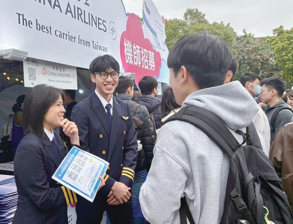 ▲中華航空於3/7參與台大校園徵才博覽會,並請現職機師分享受訓與飛行經驗。