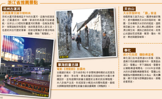 這些年浙江省酒店發展快速,現在已有星級酒店1,046家,其中五星級酒店45家,四星級165家,諸如悅榕庄、阿曼、四季等國際品牌進駐浙江。趙金勇表示,針對酒店業的發展,浙江獨創「特色文化主題酒店」,希望以此做為方向,酒店的價值不在於奢華,而在於體現文化,他舉紹興咸亨酒店為例,它即是以紹興當地的酒文化做為主題,今年浙江會有首批25家特色文化主題酒店誕生。在浙江省來台進行大型推介同時, 5 19已正式成為中國旅遊日,典故來自於398年前的5╱19遊聖徐霞客選擇從浙江寧海出發,開始躑躅30年的遊程,做為中國旅遊日發祥地─寧海、天台山,歡天喜地的迎接新的里程碑,也標誌浙江省旅遊發展的新未來。