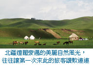 「禾木」則是中國西部最北端的鄉村,這裡保持著圖瓦人最完整的民族傳統與生活居住地,也是僅存的3個圖瓦人村落,遊覽禾木可以感受圖瓦人與世隔絕的伊甸園,原始村落與大草原和諧自然融為一體的人間淨土。烏爾禾魔鬼城則因為有罕見的風蝕地貌,以怪異得名,在哈薩克與蒙古人眼中的確有如鬼城。新疆海拔最高、面積最大的高山湖「塞裏木湖」,擁有深邃湛藍的湖水,湖岸兩旁的雲杉翠綠如茵;「巴音布魯克草原」則是天山南麓最肥美的夏牧場,草原居住著蒙、漢、藏、哈等9個民族,民族風情燦爛多彩;那拉提草原地處南北疆交通要道上,也是世界四大草原之一的亞高山草甸植物區,每年6∼9月,各種野花開遍山崗,紅、黃、藍、紫五顏六色,將草原點綴得絢麗多姿。