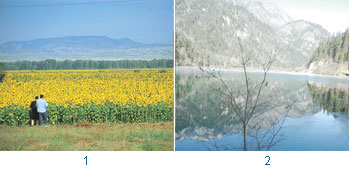 1.北疆花海。2.具民族風情的世外桃源─九寨溝。