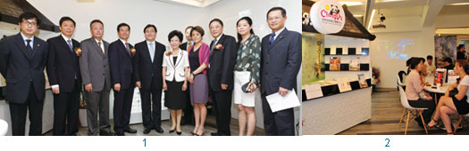 1.成都旅遊台北體驗中心開幕,旅遊界貴賓雲集。(右起)中華航空台灣地區處長兼台北分公司總經理孫鴻文、中國國際航空台灣分公司銷售經理張尤金、雄獅旅遊總經理劉文義、中國東方╱上海航空台灣分公司總經理周瑩、成都旅遊四川省人民政府副省長黃彥蓉、海旅會駐台北辦事處主任劉克智、四川省旅遊局局長郝康理、長榮航空客運本部營業部副理蔡之堅(左1)。2.「成都旅遊台北體驗中心」打造成都獨有的悠閒風格,並有專人提供成都旅遊行程規劃諮詢。