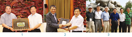 1.貴州省委副書記王富玉(右)致贈禮品給台旅會副會長謝謂君。2.(左起)北市旅行公會理事長許禓哲、省旅行聯合會理事長蕭博仁、台灣旅行公會總會前任監事主席張玉林、台旅會副會長謝謂君、貴州省旅遊局副局長李光、台灣旅行公會總會理事長姚大光共同前往黃果樹大瀑布考察。3.貴州省副省長黃康生(右)致贈紀念品給台灣旅行公會總會理事長姚大光。