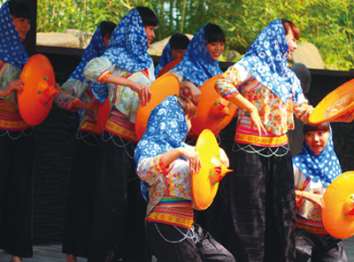 ▲惠女風情表演,著特殊服飾的惠安女將歡笑與堅忍一一展現。